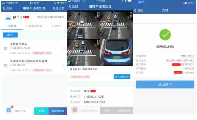 點擊交通違法記錄可以查看交通違法詳細(xì)信息及證據(jù)照片等信息。選擇需要處理的交通違法記錄,點擊【處理并繳款】網(wǎng)上直接處理并繳納罰款。